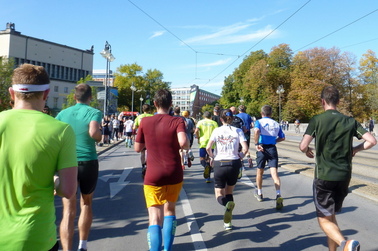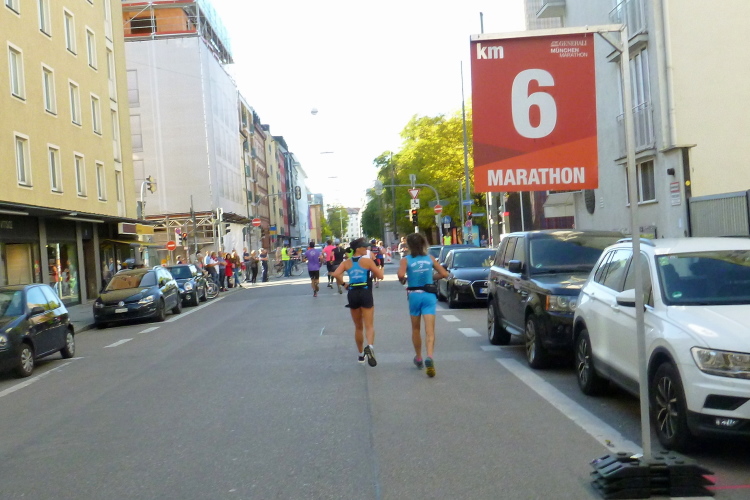 Einige Bands helfen uns immer wieder weiter, aber so richtig Drive bekomme ich erst am Ostbahnhof, als die Restkilometer einstellig werden. Gleich danach kommen die 3.45 Stunden-Gruppe mit einem Schwung von hinten, mir bleibt die Kinnlade offen. Dann geht es zur Isar hinunter und am Deutschen Museum vorbei. Noch acht Kilometer.