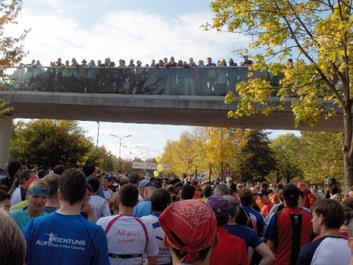 Um Punkt zehn Uhr machte sich, von Böllerschüssen begleitet, der erste Startblock auf die Reise. Zehn Minuten später konnten auch wir die 42,2 Kilometer in Angriff nehmen.