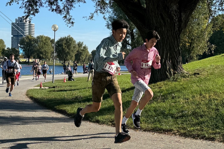 Der Samstag ist traditionell der Tag des internationalen Trachtenlaufs. Die Teilnehmenden starten oberhalb der Tribünen und legen eine 3,5-km-Runde im Olympiapark zurück. In erster Linie sind Dirndl und Lederhosen vertreten; Kimonos oder Sombreros sind eher selten. Nach dem Lauf gibt’s noch ein zünftiges Frühstück, akustisch begleitet von den Neurieder Blasmusikanten.