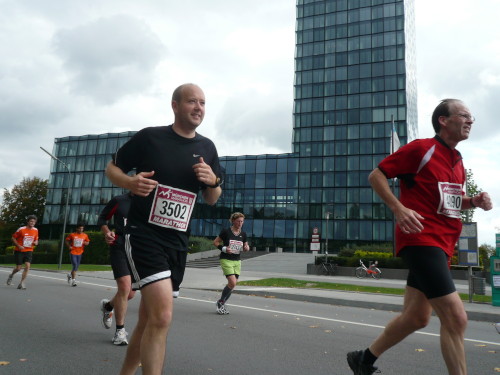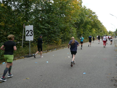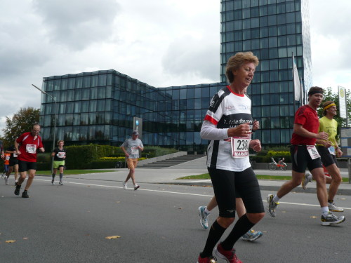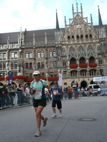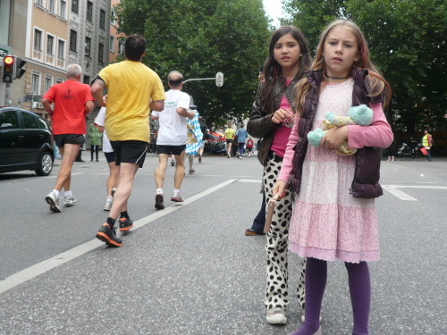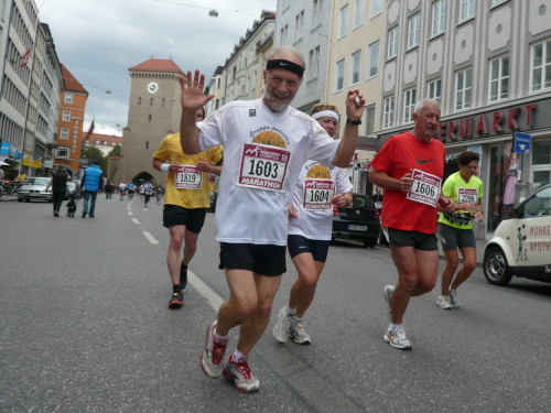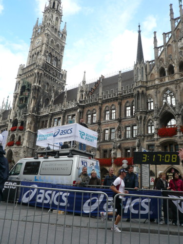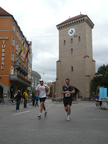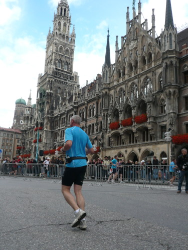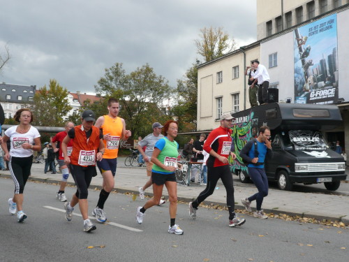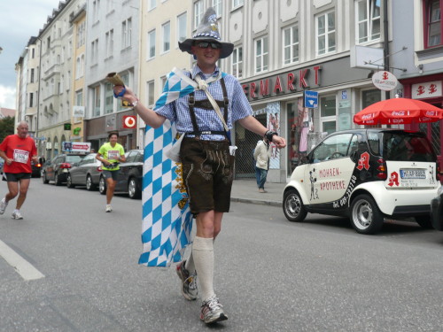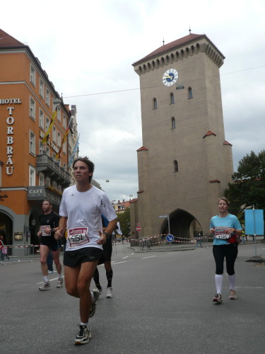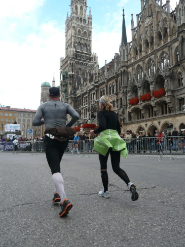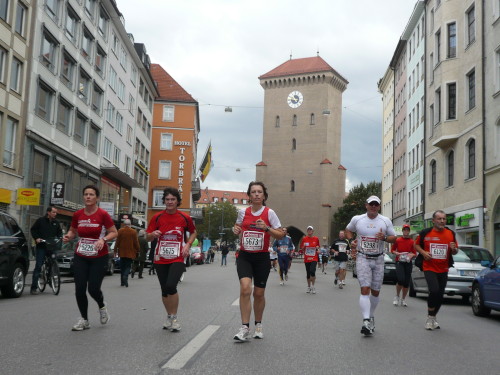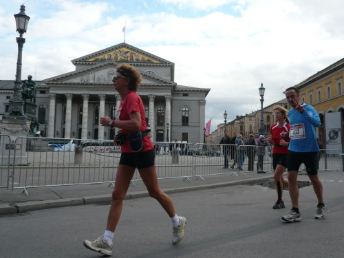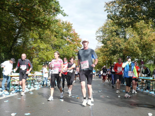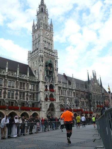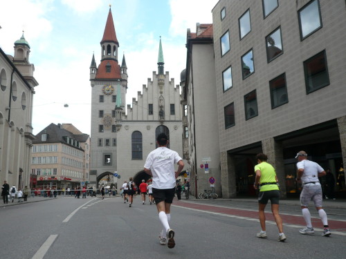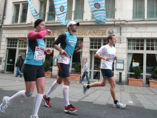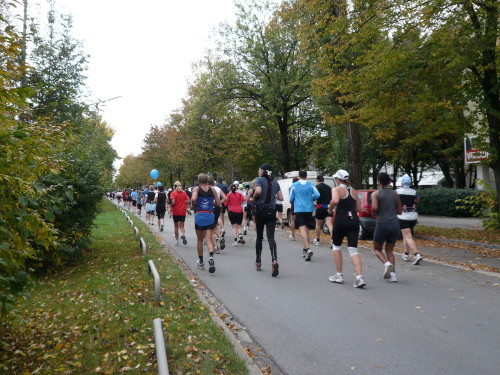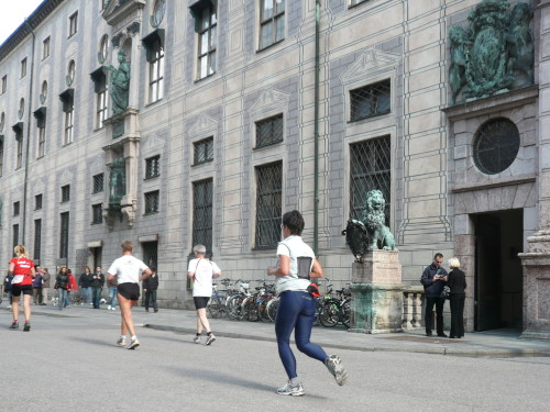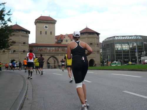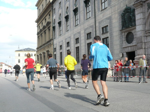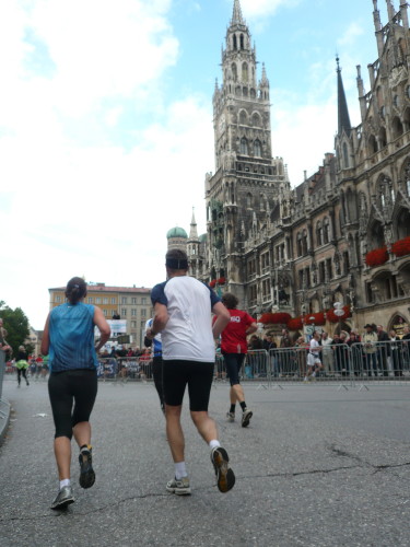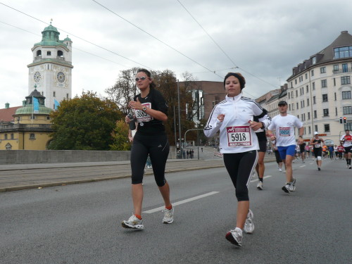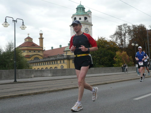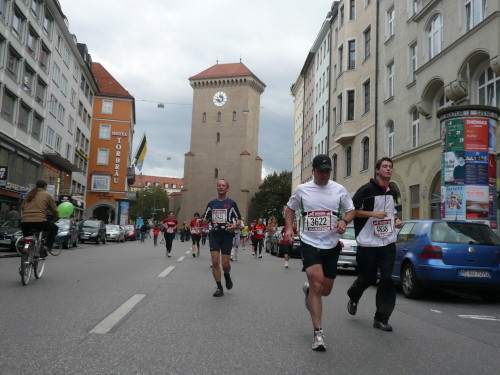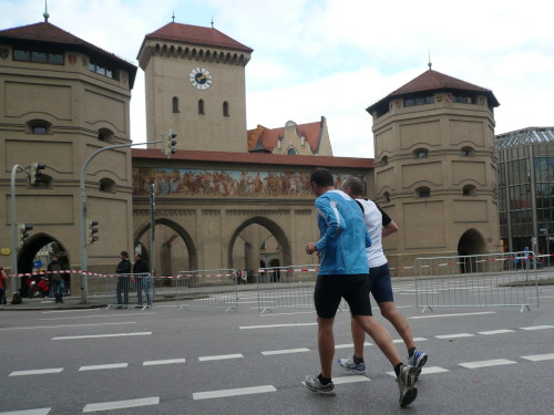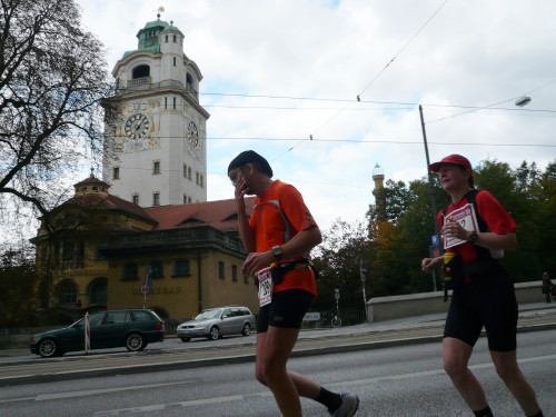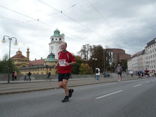 Auf den nächsten Kilometern liegen zwar attraktive Wohngegenden (Stichworte: Arabella-Park, Parkstadt Bogenhausen), aber auch eher langweilige Abschnitte (Stichwort Ostbahnhof) und erinnern mich daran, dass ein Marathon auch eine mentale Übung ist. Mir zum Beispiel kommt auf diesem Streckenabschnitt mein Vorhaben, nächste Woche wieder auf die Strecke zu gehen, ziemlich bescheuert vor. Dabei weiß jeder Marathoni, dass es auf der ganzen Welt keinen Marathon ohne eine solche „Durststrecke“ gibt. Ich bin halt etwas aus der Übung.