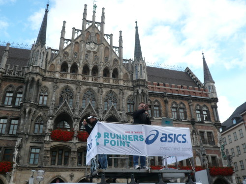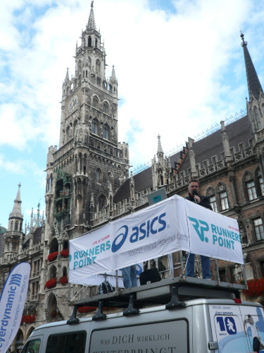 Weiter geht’s, der Marienplatz und Vanman Jochen Heringhaus warten. Nur kurz ist das Vergnügen, denn wir laufen zunächst auf den Rindermarkt bis zum Sendlinger Tor und auf der Sendlinger Straße dann noch einmal und jetzt so richtig, umjubelt und mit Applaus überschüttet, auf den liebsten Platz der Münchner. Schon als 1158 Heinrich der Löwe die Stadt gründete, gab es hier den Marktplatz und als Ludwig der Bayer 1315 München die Marktfreiheit verlieh, war das an die Auflage geknüpft, diesen Platz niemals zu bebauen. Man hält sich dran. Als 1867 mit dem Bau des Neues Rathauses begonnen wurde, mussten dafür die mittelalterlichen Landschaftshäuser weichen.
