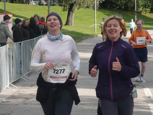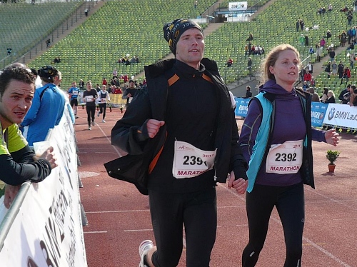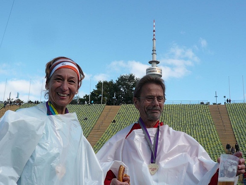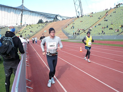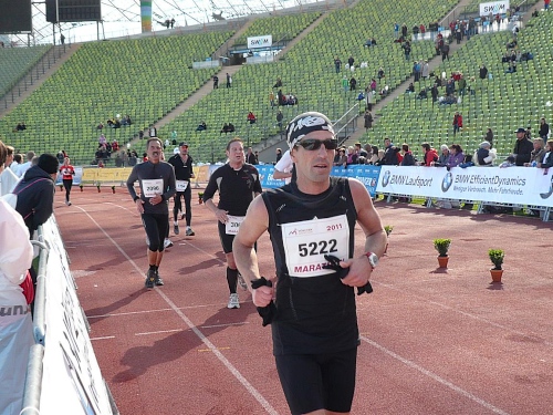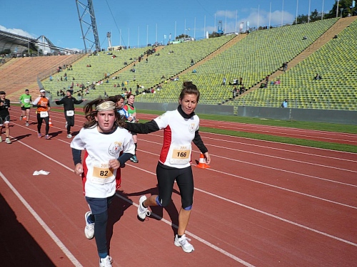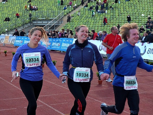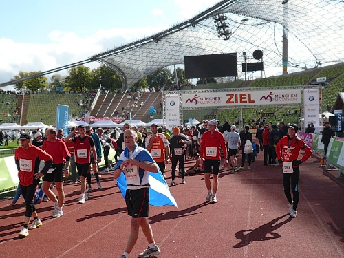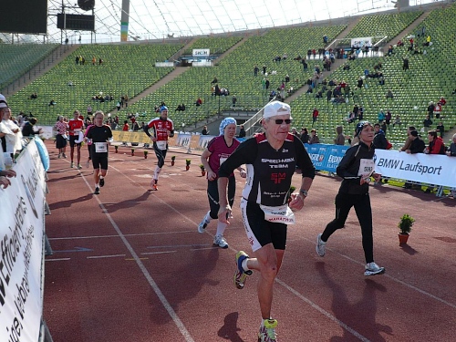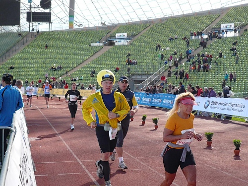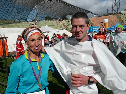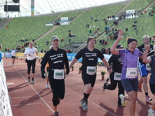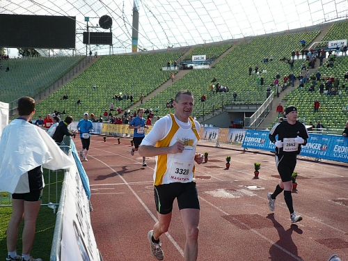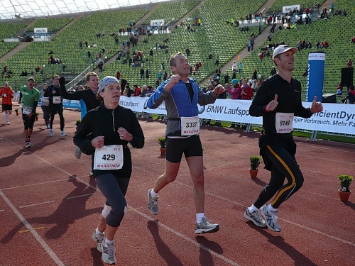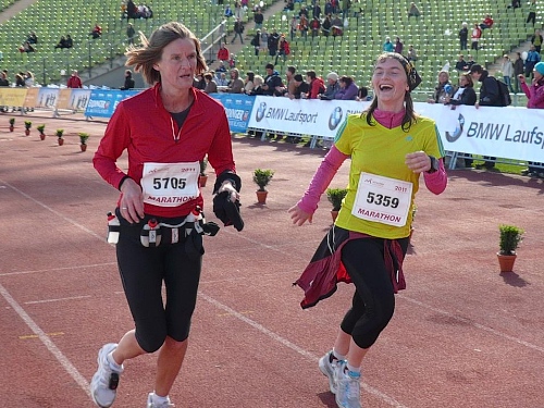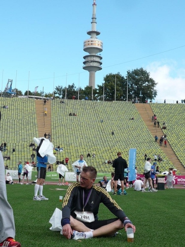 Ja, und unsere Marathonküken Markus und Melanie sind dem 3.15er Pacer noch sechs Sekunden davongerannt. Den Pacer haben die beiden in einem 4.15er Kilometersplit am Marienplatz niedergerannt. Melanie wird durch das Finish im Olympiastadion noch ein Wunsch erfüllt. Die Teilnahme am größten Marathon über dem großen Teich. Melly, kannst ja mal auf dieser Seite bei mir schauen, wie es 2009 da zuging. Der Markus sprach von sich aufgrund eines verletzungsbedingten Trainingsrückstandes mehr fett als fit zu sein. Ja, und Lisa und Carina haben ihre Jugendklasse gscheit aufgemischt. Platz eins und zwei. In der nahen Zukunft werden die beiden die klassische Distanz auch anpacken. Heit bin i von lauter Uafiechern umzingelt, i oider (Marathon)Sack.