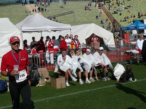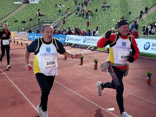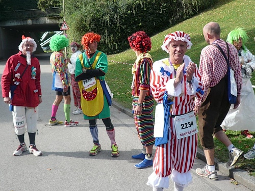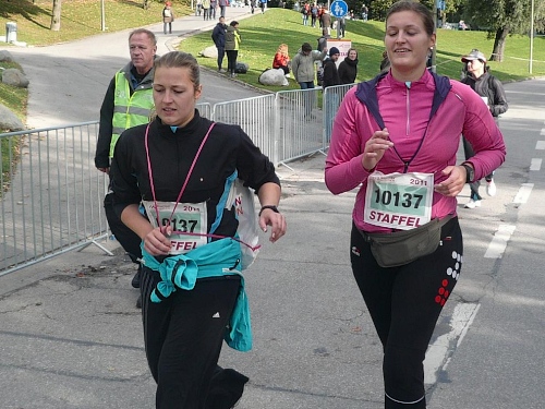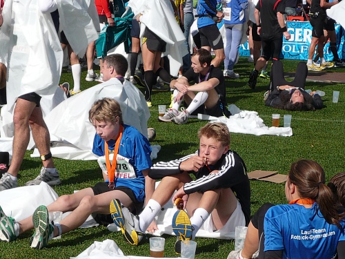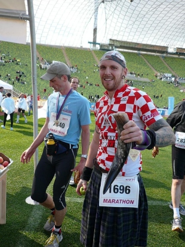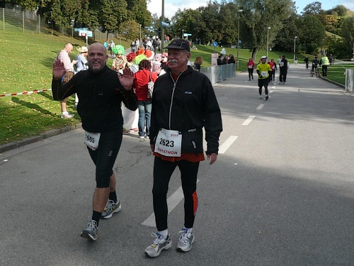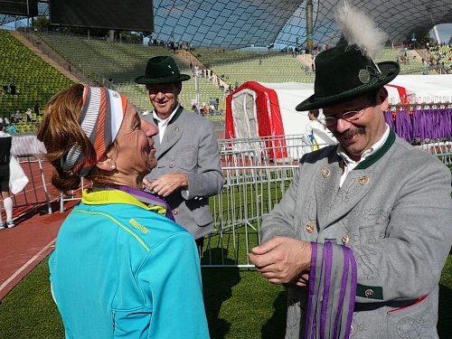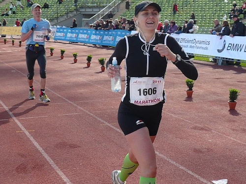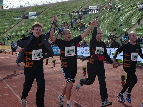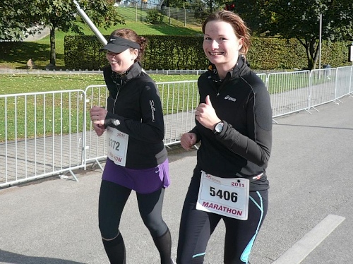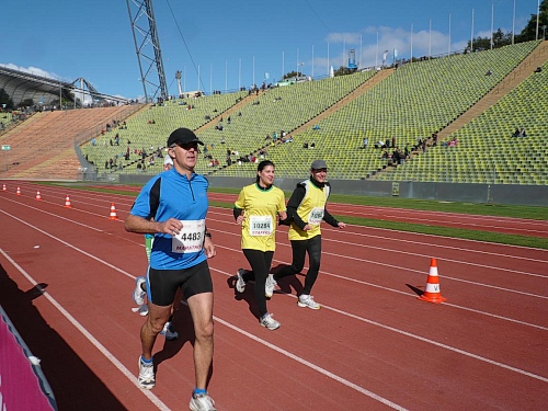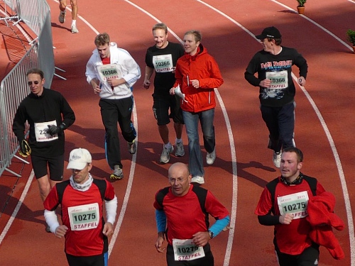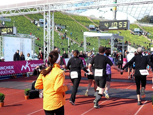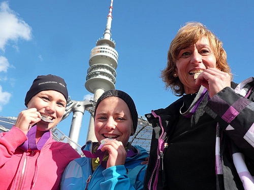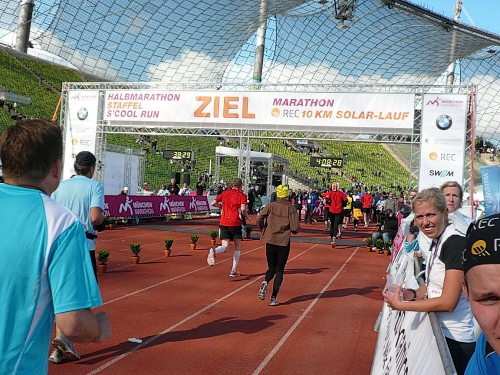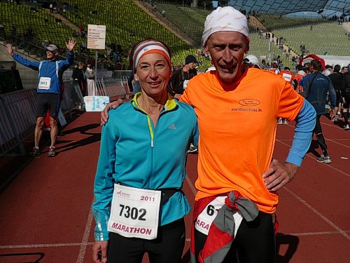 Ja, und unsere Marathonküken Markus und Melanie sind dem 3.15er Pacer noch sechs Sekunden davongerannt. Den Pacer haben die beiden in einem 4.15er Kilometersplit am Marienplatz niedergerannt. Melanie wird durch das Finish im Olympiastadion noch ein Wunsch erfüllt. Die Teilnahme am größten Marathon über dem großen Teich. Melly, kannst ja mal auf dieser Seite bei mir schauen, wie es 2009 da zuging. Der Markus sprach von sich aufgrund eines verletzungsbedingten Trainingsrückstandes mehr fett als fit zu sein. Ja, und Lisa und Carina haben ihre Jugendklasse gscheit aufgemischt. Platz eins und zwei. In der nahen Zukunft werden die beiden die klassische Distanz auch anpacken. Heit bin i von lauter Uafiechern umzingelt, i oider (Marathon)Sack.