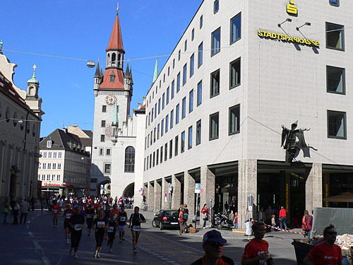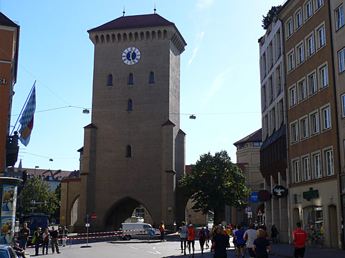 Noch einmal sehen wir vor uns das Rathaus, lassen uns von den vielen Menschen feiern und laufen dann auf das Isartor zu, dem östlichen Stadttor der historischen Altstadt, wo das Valentin-Karlstadt-Musäum (kein Schreibfehler) untergebracht ist. Ein Blick auf die Uhr lässt mich fast verzweifeln. 12.30 Uhr zeigt sie an, fast 2 ½ Stunden für knapp 14 Kilometer?