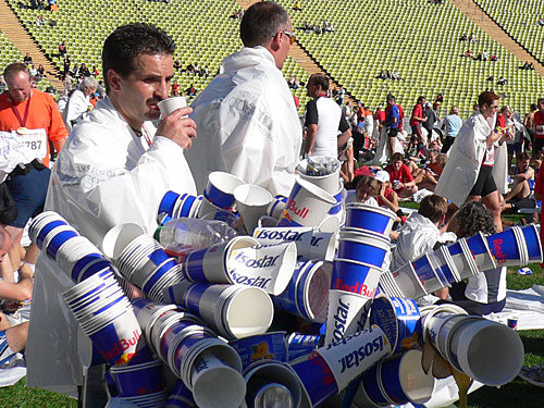„Mir san mir“, sagen die Bayern ja schon immer selbstbewusst. Die Marathonmesse auf zwei Etagen in der Event-Arena ist dann auch beeindruckend und sehr gut besucht. Viele Veranstalter, auch aus dem Ausland, präsentieren ihren Lauf. Hier gibt es auch die Startunterlagen und in der Cafeteria nebenan werden leckere Nudeln serviert.