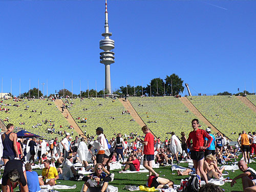 Seit seiner Freigabe im Jahre 1792 zählt er mit seinen vielen Sehenswürdigkeiten und Biergärten zu den beliebtesten Plätzen der Münchner. Auch heute sind wieder viele Menschen hier unterwegs. Entweder liegen sie faul in der Sonne, oder sie beklatschen die Marathonis. Auch der olympische Marathon führte durch den Englischen Garten. Dafür mussten die Wege extra asphaltiert werden.
