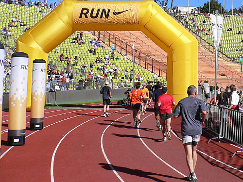 1972 lief der in München geborene Amerikaner Frank Shorter diesen Weg. Er war ganz sicher, die Olympische Goldmedaille zu gewinnen. Sein Vorsprung war so groß, dass er den Zweiten nicht sehen konnte. Plötzlich hörte er aus dem Stadion einen Riesenjubel und tosenden Applaus. Er konnte nicht glauben, was er hörte. Es stand keine Entscheidung an, alle warteten auf den Sieger des Marathonlaufes, und das war er, und er war hier, vor dem Stadion.