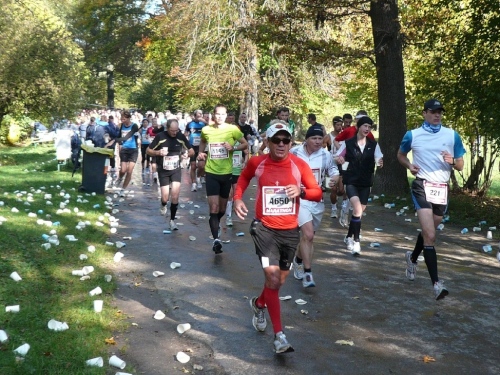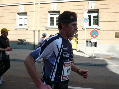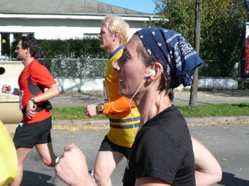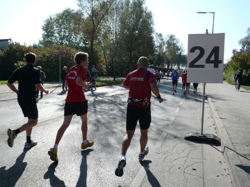 Als ich nach einem kleinen Geschäft wieder auf die Strecke begebe, läuft ein weiterer Vereinskollege auf. Paul Leikam will wissen, ob er es noch kann und außerdem für 2011 proben. Denn da hat er einen runden Geburtstag und will marathontechnisch die Sau rauslassen.