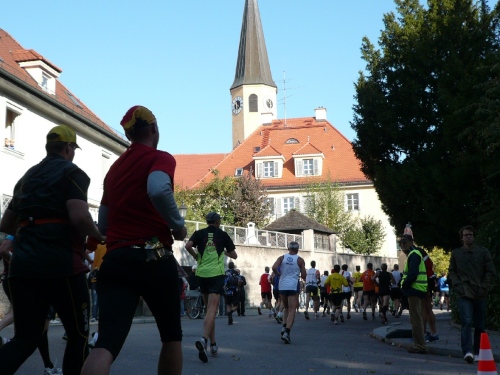 Punkt 10 Uhr haut uns ein Böllerschuss auf die Strecke. Heute ist wirkliches Meisterwetter. Wer eine PB aufstellen will und sich gut vorbereitet hat, dem steht da nichts entgegen. Sonnig, zwar noch kühl am Start, eine flache und schnelle Strecke, Zuschauer an der Strecke und viel Musik. Was will man denn da noch mehr. Weniger meisterlich, dafür eher ein ortsfestes Tief liegt nicht weit von hier. Wo? Nun, an der Säbener Straße. Ihr wisst schon wo und bei wem!