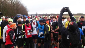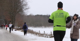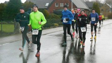 Dann wird die Meute losgelassen. Es sind nicht alle 400 Gemeldeten gekommen, die kalten Wetterbedingungen und die Schneewarnung haben doch viele Läufer vom Start am 8. Kevelaer Marathon abgehalten