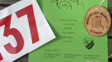 Ich fürchte, ich werde schon sehnsüchtig erwartet, denn man empfängt mich mit herzlichem Applaus. Wie der Lauf, so die Medaille: Natur pur. Sie ist nämlich aus Holz mit eingebrannter Widmung.