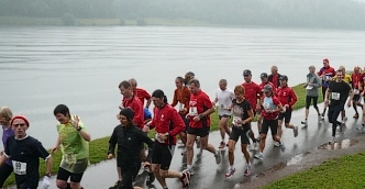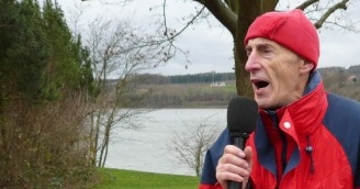 Nach Heinrichs Ansprache geht’s wie in einer Prozession hinunter zum Twistesee, wo auf dem Damm gestartet wird. Zuvor wird die Orts- und Laufprominenz präsentiert