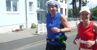 Lange stehe ich noch im Zielbereich und lasse mir immer wieder von Brigitte und den anderen Mädels eine Medaille umhängen und mich abbusseln. Eigentlich müssten sie mich durchschauen. Aber offenbar bu...