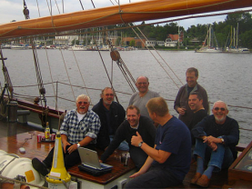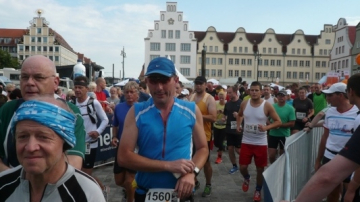 Um 18:00 Uhr ging’s dann los. Der Halbmarathon wurde um 20:00 Uhr am anderen Warnowufer in Gehlsdorf gestartet. Mit dem Schiff wurden die Teilnehmer übergesetzt.
