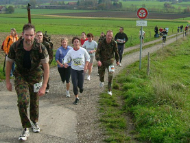 Die Musikkapelle spielt Marschmusik. Es ist zu kalt, um rum zu stehen. Jeder ist irgendwie in Bewegung. 30 Minuten nach den Waffenläufern startet der „Marathon der Zivilläufer“ dann nicht ganz so spek...