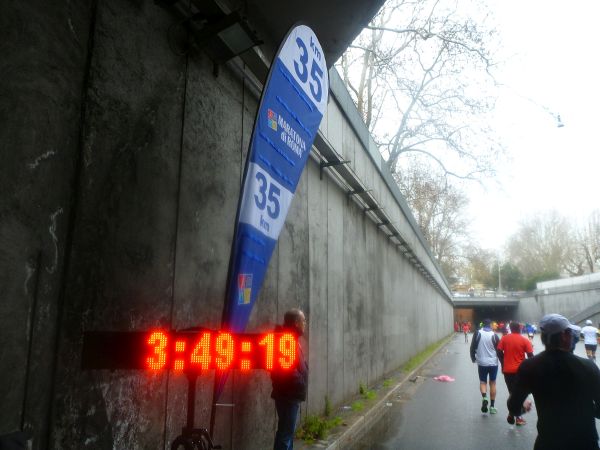 Dazu jede Menge Pfützen. So geht es wieder am Tiber entlang. Die Piazza della Bocca della Verità und die Kirche Santa Maria in Cosmedin lassen bei Km 13 wieder rechts liegen. Ich soll heute nicht zum Mund der Wahrheit kommen.
