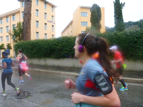 Massen an Läufern setzen sich in Bewegung. Gut, dass die Strasse zur Piazza Venezia breit ist. Wir verlassen die Via dei Fori Imperiali. Links bleiben die Trajansmärkte und die Colonna Traiana zurück. Wir laufen nach links unterhalb des weißen Monumentalbaus zu Ehren Königs Vittorio Emanuele II. Kopfsteinplaster erwartet uns auf dem Weg hinunter zum Teatro Marcello. Davon werden wir heute noch einiges unter die Füße nehmen müssen.