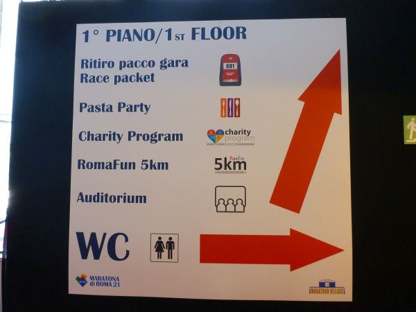 Das ist doch mal ein Name für den Ort der Startnummernausgabe! Freitag hole ich mir dort die Startunterlagen ab, da ist weniger los. Mit dem Bus (714) ist der Palazzo dei Congressi gut erreichen. Am Eingang zeige ich die Anmeldebestätigung vor. Wer sie vergessen hat, kann sie von freundlichen jungen Damen ausdrucken lassen. Auf rotem Teppich flaniert man über die Expo.