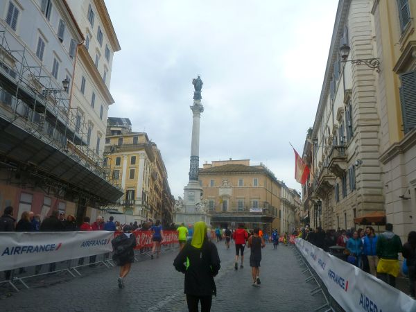 Nach Km 39 ist es soweit. Wir umlaufen den ägyptischen Obelisken auf der Mitte des Platzes und machen uns auf den Weg zur Piazza di Spagna (Spanische Treppe). Dort angekommen verzichte ich auf ein Treppentraining.