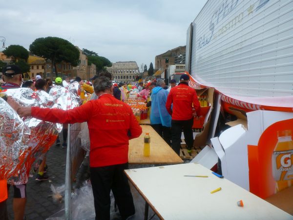 Wieder ist das Monument von Vittorio Emanuele II zu sehen und da liegt auch schon das Ziel vor mir. Hier ist Rom. Phantastisch. Nach einem einmalig eindrucksvollen Marathonstart genieße ich in gleicher Weise den Zieleinlauf und den grenzenlosen Jubel der Finisher.