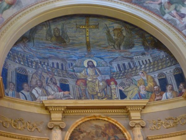 Santa Pudenziana in der Via Urbana. Kleine Kirche aus dem 4. Jahrhundert, monumentales Mosaik in der Apsis.
