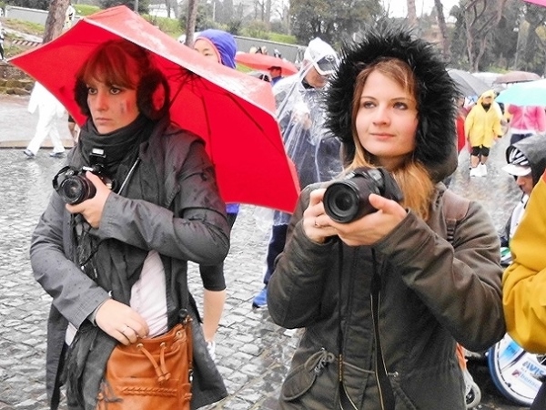 Die Kapelle, die bunte Läuferschar, das blütenweise Monument Vittorio Emanuele II. – ein Mangel an Fotomotiven besteht nicht. Aber wenn ich nicht aufpasse, verliere ich meine Italienerin. Fast hundert Meter ist sie schon vor mir. Damit ich sie nicht verliere, trägt sie einen Luftballon. Ja Freunde, es war wie in diesem Traum. Sie hat mich angesprochen und gefragt, wo ich her komme. Da musste ich erst mal überlegen. Bis es mir einfiel: Germany…