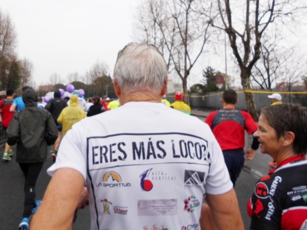 Ich würde euch gern schreiben, was es so in Richtung Ziel noch zu sehen gibt. Aber da empfehle ich euch die vielen bereits vorhandenen Berichte vom Marathon in Rom. Ich sehe nur noch eins: Straßenbelag, der übrigens nicht selten aus Kopfsteinpflaster besteht. Was es links und rechts zu sehen gibt, es interessiert mich nicht mehr. Was Frauen doch so aus Männern machen: Ohne Sabrina würde ich jetzt ganz gemütlich zum Ziel gehen.