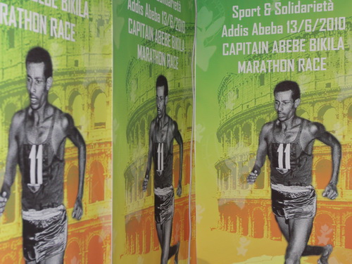 Die Römer vergessen ihre Helden nicht. 50 Jahre nach dem Olympiasieg in Rom steht der Marathon in der Italienischen Hauptstadt ganz im Zeichen der legendären 11, Abebe Bikila. Auf Shirts und dem obligatorischen Rucksack, den jeder Teilnehmer beim 16. Rom Marathon erhält und selbstverständlich auf der Medaille, wird seiner gedacht. Die Legende lebt.