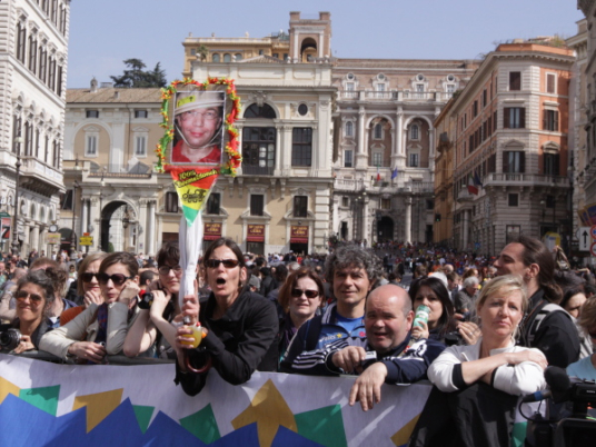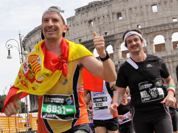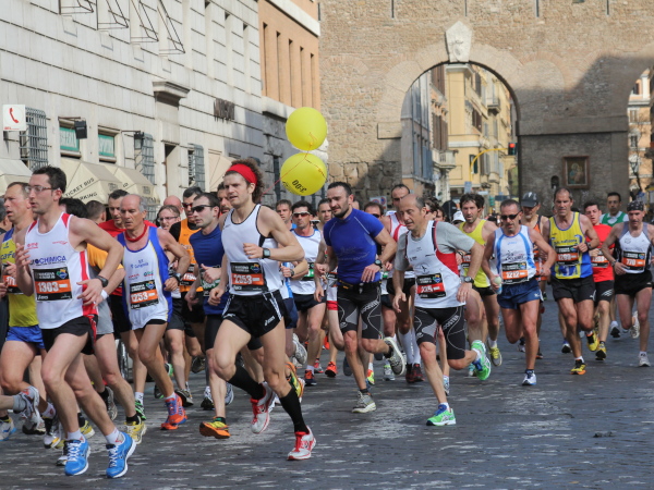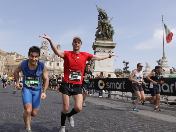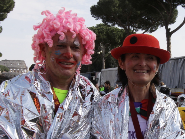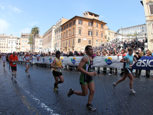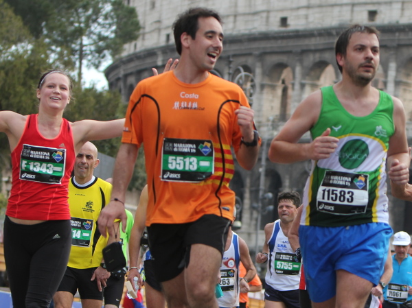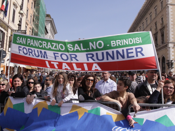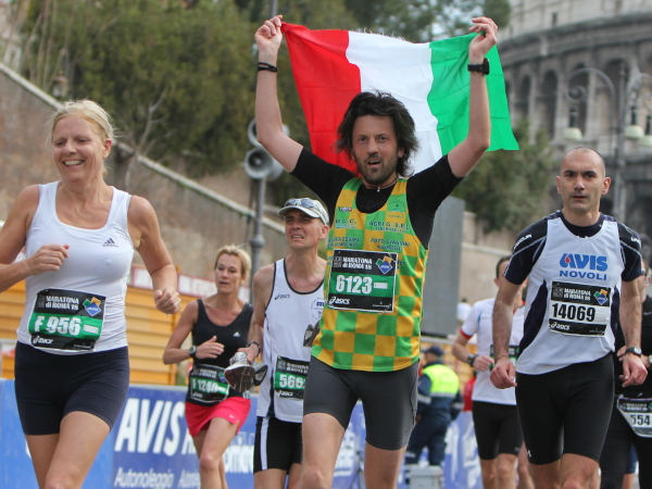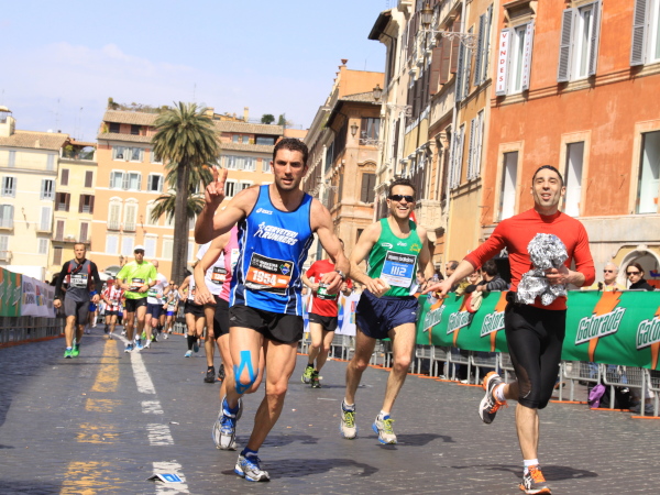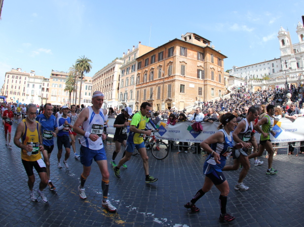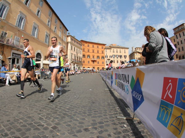 Jetzt läuft man auf die Piazza Venezia zu und blickt auf eine unübersehbare Menschenmenge. Ein 5 Kilometer langes Schaulaufen steht auf dem Programm, ehe man einen Steinwurf weiter wieder auf die Piazza kommt, um die letzten ca. 3 km in Angriff zu nehmen.