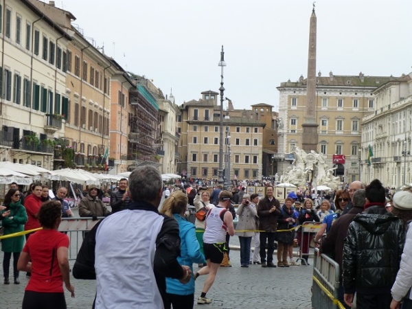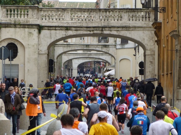 Und auch publikumsmäßig ist auf keinem Teil der Strecke mehr als hier geboten. Die Italiener mögen sportverrückt sein, vor allem wenn es um Fußball, Radfahren und Automobilsport geht – so richtig laufvernarrt sind sie nicht. Zumindest nicht als Zuschauer. Und so sind echte Stimmungsnester eher rar gesät. Emotionen kommen allerdings umso mehr auf, wenn ein Mitglied des jeweiligen Familienclans ins Blickfeld kommt. Dann kann es schon mal passieren, dass eine verzückte italienische Mama ins Läuferfeld stürzt, um ihren „Helden“ an die Brust zu drücken.