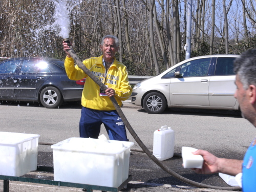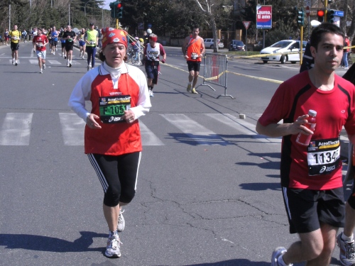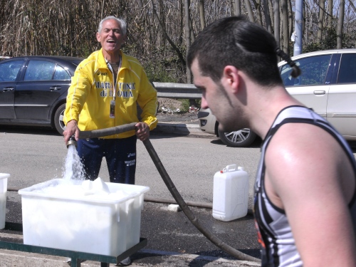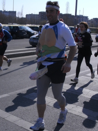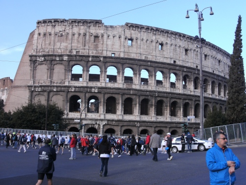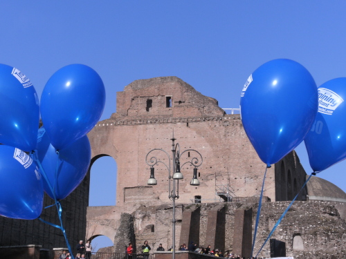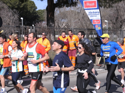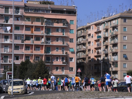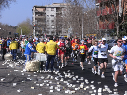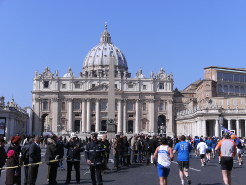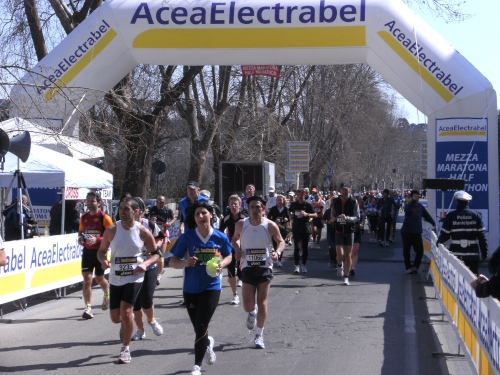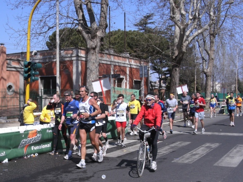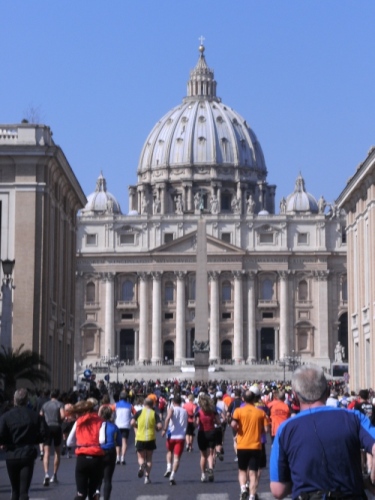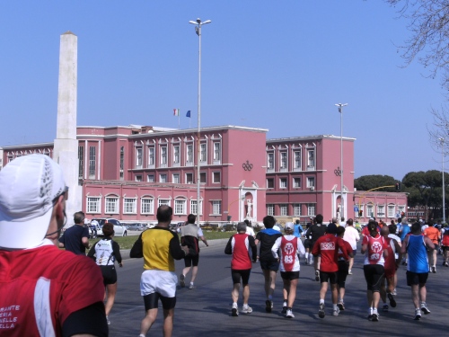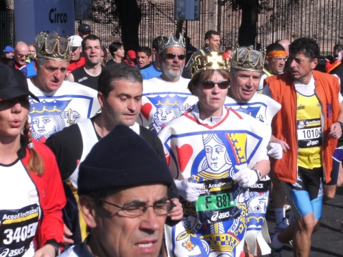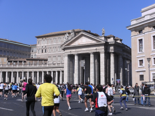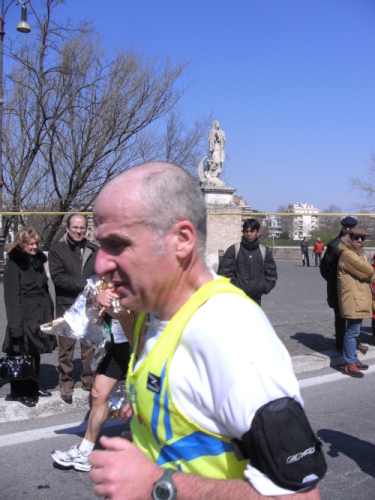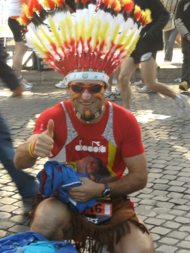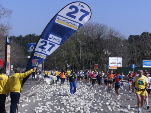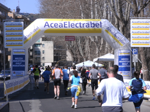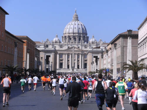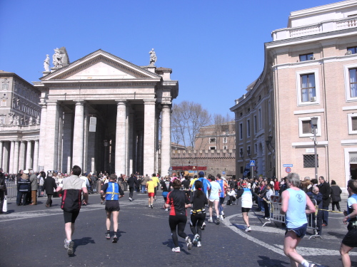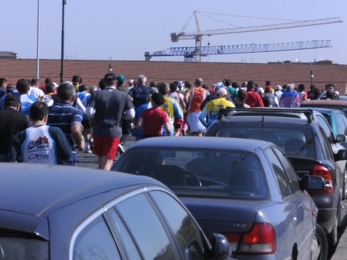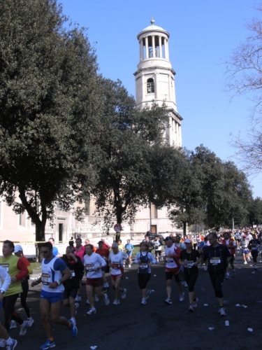 Über 11.000 Starter wollten mir uns den Lauf genießen. Das war nach über 12.000 Teilnehmern 2007 die zweitgrößte Beteiligung am Maratona di Roma. Alle freuten sich über das sonnige Wetter. Es war zwar am Morgen noch frisch und auch windig, aber die Sonne lachte vom strahlend blauen Himmel und versprach einen schönen Tag. Die Kälte der letzten Tage war gemildert, es herrschten zum Laufen angenehme Temperaturen. Gegen die Kühle des Morgens hatten wir ausgesonderte Kleidung mit, der wir uns eine Minute vor dem Start entledigten und an den Straßenrand warfen – wie viele andere Läufe auch.