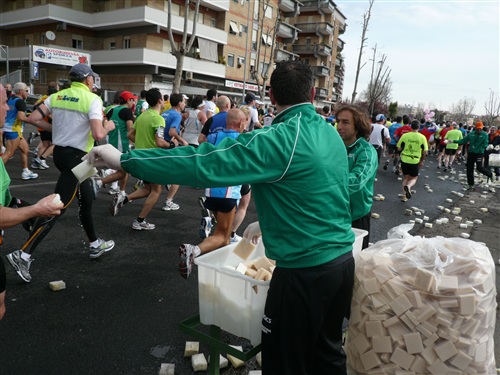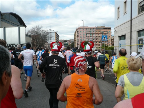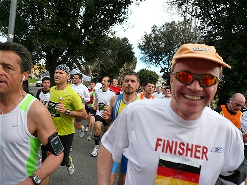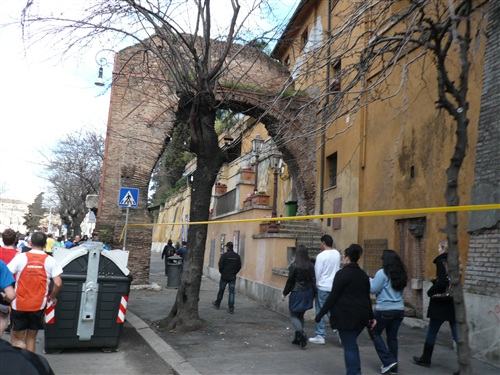 Also wenn das so weitergeht, werde ich bald mehr Zeit zum Fotografieren als zum Laufen benötigen! Über die Via Osteniense erreichen wir km 5 und sind von den visuellen Eindrücken schon ganz mitgenommen. Auf der Strecke werden übrigens alle 5 km und an der Hälfte der Strecke die Zeiten chronometrisch erfasst. Außerdem werden lt. Veranstalter weitere, nicht angegebene Messungen vorgenommen. Besch...ummeln ist also unmöglich. Obwohl ich im weiteren Verlauf, auch in der zweiten Hälfte, Personen sehen werde, die rein äußerlich unmöglich so lange so schnell gewesen sein können.