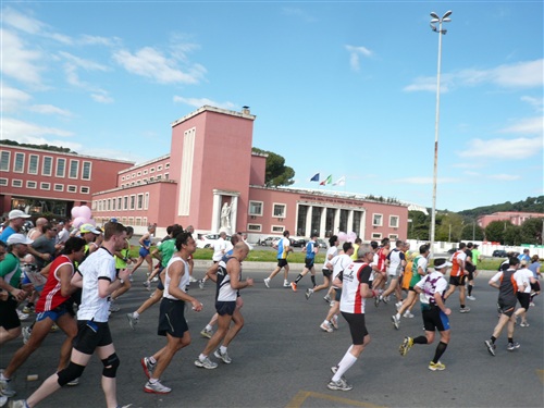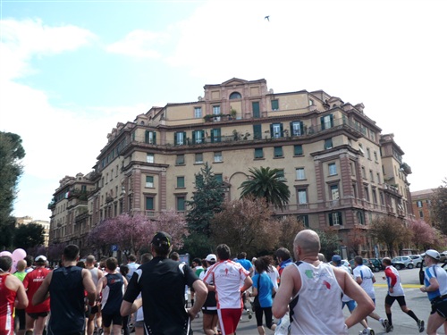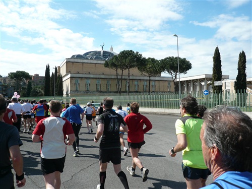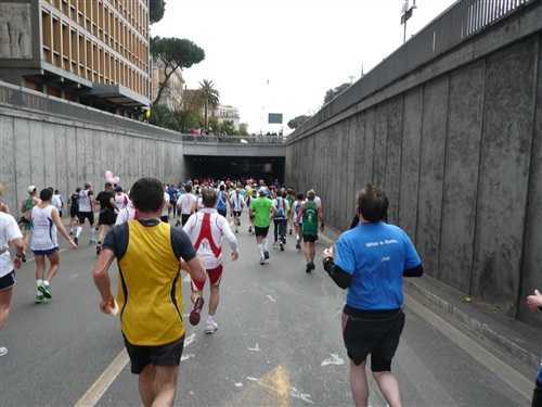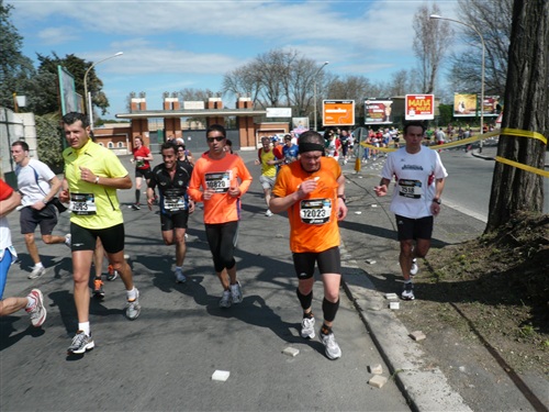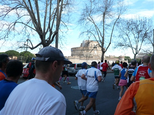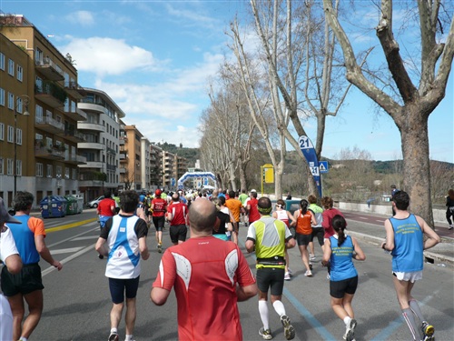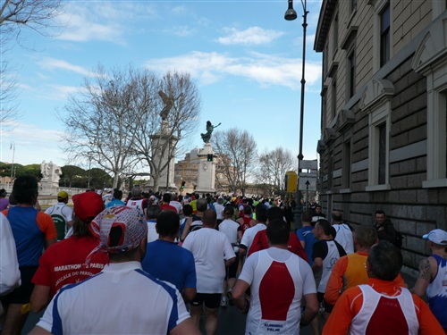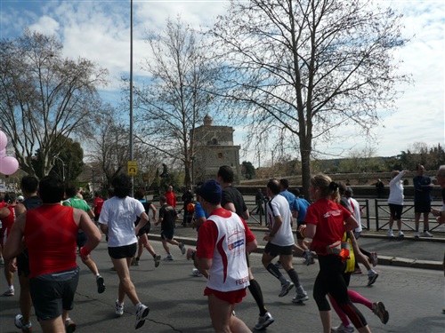 Ab der Moschee bei ca. km 26 geht es wieder den Tiber zurück stadtwärts. Der Zuschauerzuspruch hält sich insgesamt, von der Innenstadt abgesehen, eher in Grenzen. Volksfeststimmung, wie ich sie bei einigen deutschen Marathons erleben durfte, ist hier leider Fehlanzeige. An zentralen Stellen in der Stadt und natürlich besonders im Start-/Zielbereich geht es aber dennoch hoch her.