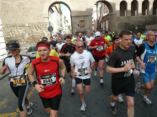 Natürlich sind die Beine inzwischen längst schwer geworden. Aber die Ablenkung ist groß und so kommen böse Gedanken ans Aufhören erst gar nicht auf. Ich will ja schließlich nicht mit Blaulicht durch Rom düsen, nein, ICH nicht. Auch wenn man hier schon früher wußte: In magnis et voluisse sat est - Bei großen Dingen genügt es auch, sie gewollt zu haben. Bei wem es beim Stichwort „Blaulicht“ nicht geklingelt hat, dem sei der m4y-Bericht von 2009 zum Nachlesen empfohlen - eine Sternstunde deutschen Laufjournalismus’!