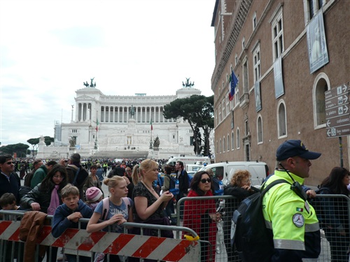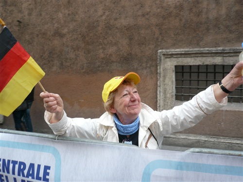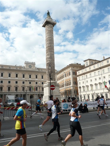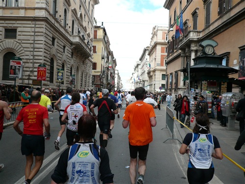 Die Via del Corso, charakteristisch für das von mir Dörfler empfundene römische Verkehrschaos ist für uns gesperrt, ein ganz neues Gefühl. Rechts kann ich durch eine schmale Gasse hindurch schon einen ersten Blick auf die Spanische Treppe erhaschen. Plötzlich macht es dreimal „Popp“ wie von zerplatzenden Luftballons. Zunächst kann ich mir keinen Reim darauf machen, sehe aber bald das nette Pacemaker-Mädel ohne Ballons laufen. O je, zu langsam geworden. Wo ist jetzt der Rest der Truppe? Hinter mir? Vor mir? Ich beschließe, sicherheitshalber einen Zahn zuzulegen und fange sofort an, reihenweise zu überholen.