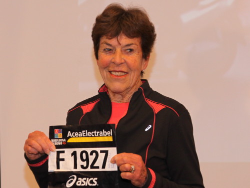 Betty Jean McHugh kommt aus Kanada. Wegen ihres Alters (82 Jahre) und ihrer Rekorde (10 km, Halbmarathon, Marathon in der Altersklasse über 75) nennt man sie „The Flying Granny“. Sie ist zum ersten Mal in Europa und hat sich Rom ganz bewusst ausgesucht. „Weil er so schön sein soll.“ 5:04 Stunden ist sie unterwegs. Es muss ihr wirklich gefallen haben. Zuletzt hat sie für den Vicotria Marathon nur 4:36 Stunden gebraucht.