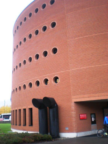 Keine Angst, was ich jetzt erwähne hat keinen Zusammenhang mit der eben geschilderten Gemütslage. Es ist einfach so, dass das nächste, was mir am Wegrand besonders ins Auge sticht, ausgerechnet das Bestattungszentrum und Krematorium für den Raum Locarno ist. Nicht wegen seinem Bestimmungszweck, sondern wegen der eindrücklich schlichten kubischen Architektur mit klaren Linien und den perfekt aufeinander abgestimmten Materialien Sichtbeton und Sichtbackstein.