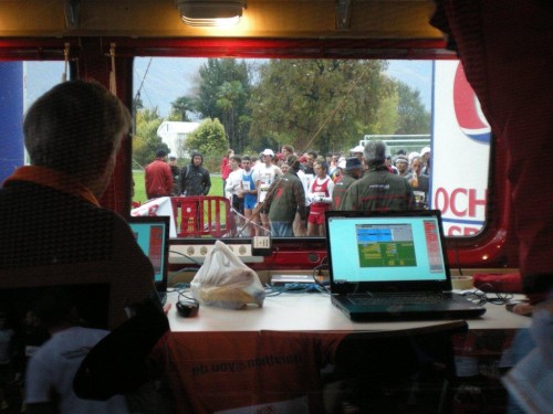 Weiter vorne im gleichen Gebäude an der Bar wird rege Kaffee getrunken. Da ich meine Tagesration schon intus habe, lasse ich diesen Teil Italiatà links liegen, gebe meine Wertsachen ab und gehe anschließend zur Dreifachsporthalle, wo die Herrenumkleide ist. Die Infrastruktur im Sportzentrum ist für die 1300 Teilnehmer, davon etwa 230 auf der ganzen Strecke, ausreichend, und auch ohne zusätzliche Toilettenkabinen gibt es nicht längere Schlangen als sonst wo.