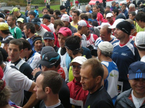 Ich muss nur den anderen Teilnehmern folgen, dann sehe ich, in welchem der architektonischen Schmuckstücke die Startnummernausgabe ist. Schnurstracks halte ich die Nummer und den in der Startgebühr inbegriffenen Leihchip von Datasport in meinen Händen. Sehr aufmerksam ist die Erklärung zu Chip und Chiprückgabe, die ich dazu erhalte.