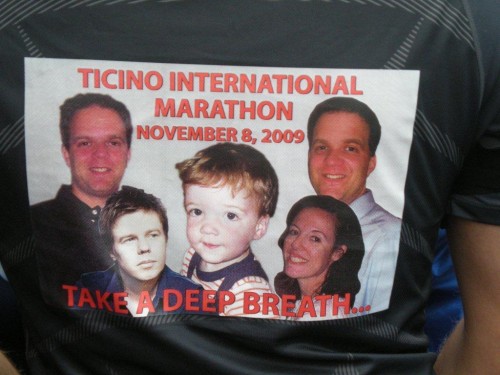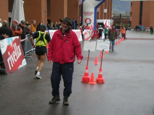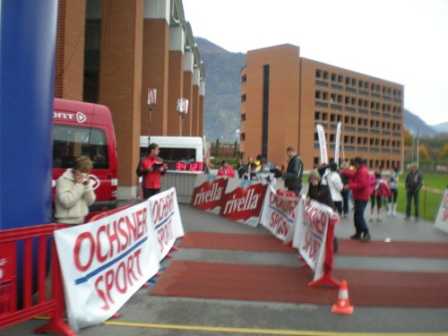 Gegen Abgabe des Leihchips erhalte ich ein Maratona-Funktionsshirt in Größe M. Ich weiß nicht, ob dies die Einheitsgröße ist oder ob die Auswahl an verschiedenen Größen den Finishern des Halbmarathons vorbehalten war. Schade, wenn dem so ist und Leute sich mit einem gut sitzenden Shirt mit dem Aufdruck Maratona Ticino schmücken dürfen, aber nur die Hälfte davon wirklich bestritten haben, während andere die ganze Leistung erbracht haben und ihnen dies verwehrt bleibt, weil sie nicht so feingliedrig gebaut sind.