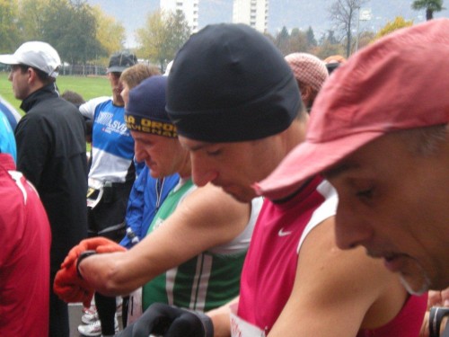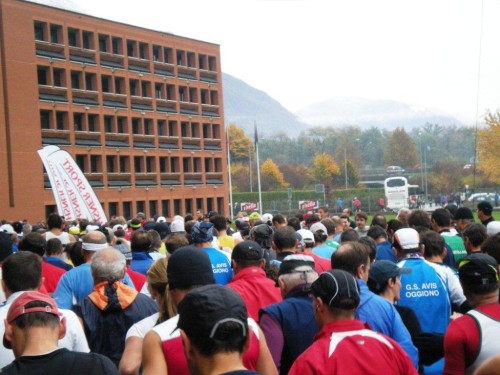 Zusammen mit den Maratonisti startet eine erste Gruppe der Mezzo-Maratonisti, drei weitere Gruppen folgen mit je 10 Minuten Abstand. Was bedeutet das für die Langstreckler? Ich werde noch darauf zurückkommen.