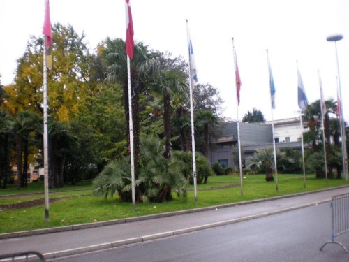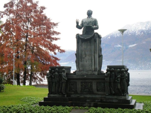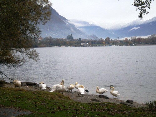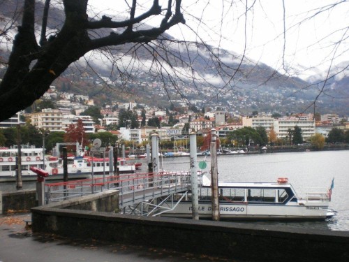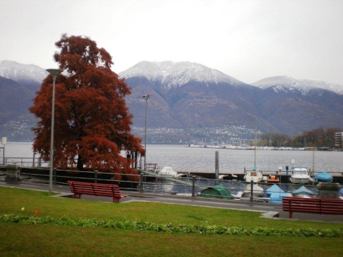 Am Quai vorne beim Hafen ist eine kurze Begegnungstrecke, doch ich kenne niemanden, die mir vom Bahnhof her entgegenkommt. Erst auf dem Gehsteig der Seestraße, dann auf der Uferpromenade, geht es zurück in die Magadinoebene. Zwischen mir und dem See sind die Parkanlagen, die auch ohne Sonnenschein und an einem grauen Tag wie heute ihre Anziehungskraft haben.