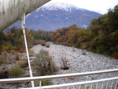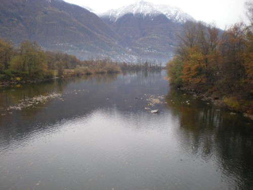 Die Verzasca wird wieder überquert, diesmal auf der neuen Passarelle von Gordola. Dass dieser Brücke mit ihren beiden kraft- und schwungvollen Bogen der Vorzug gegenüber einem banalen funktionalen Fußgängerübergang gegeben wurde, erfreut das Auge und spricht für den Geschmack des behördlichen Auftraggebers. Schade wäre nur, wenn dem bereits einsetzenden Algenbewuchs auf dem filigranen Bauwerk nicht Einhalt geboten wird.