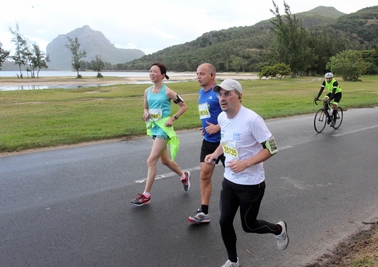 Start ist für den Marathon in St. Felix, für den Halbmarathon beim Baie du Cap, beides traumhaft schöne Plätze, von denen man eigentlich nicht weglaufen, sondern immer verweilen will. Ziel ist für alle in St. Felix. Vergesst eure Vorurteile gegenüber Pendelkursen. Die Strecken auf Mauritius muss man einfach in beiden Richtungen erleben, so unterschiedlich sind die Eindrücke und Ausblicke entlang der Küste. Weiße Strände und Lagunen, dschungelartige Waldstücke, Zuckerrohrfelder und kleine Orte und Siedlungen wechseln sich ab. Und ab und zu hat man einen Blick auf die Berge der Insel.
