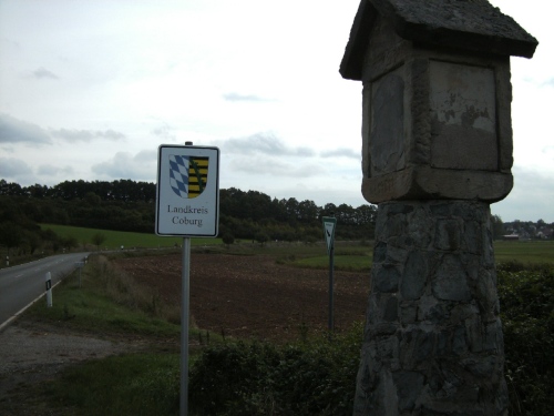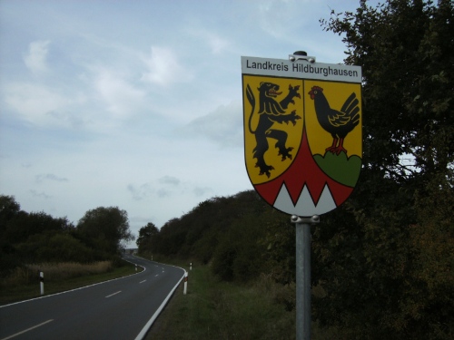 Guter Asphalt, kaum Wellen, hier kann man richtig Tempo machen. Es wird zudem jeder Kilometer angezeigt. Von der Ferne sehe ich bereits die Heldburg im Gegenlicht. Es ist schwierig, die Burg bei diesen Lichtverhältnissen auf den Chip zu kriegen. Ich versuche es trotzdem.