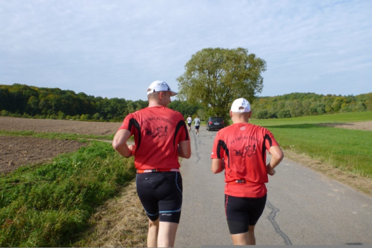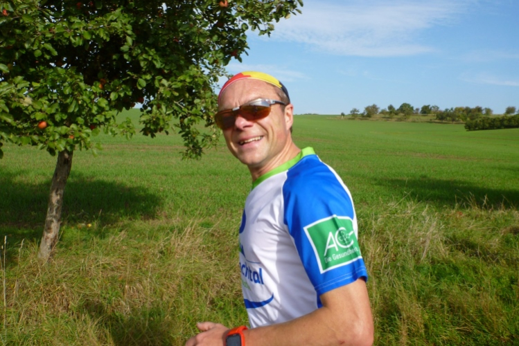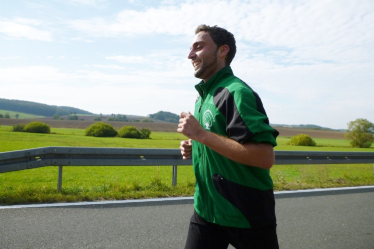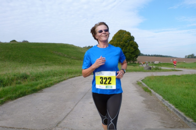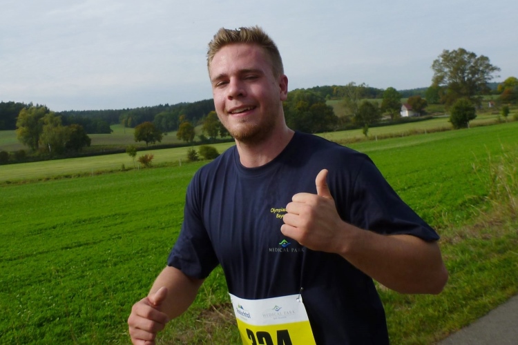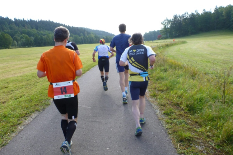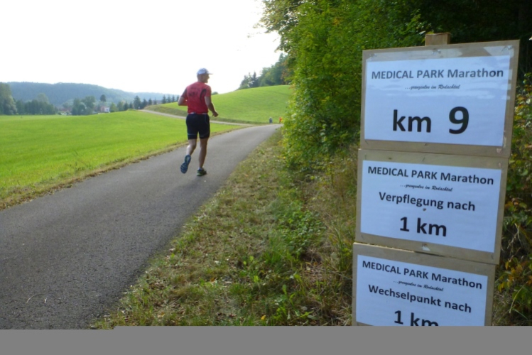Ein Staffelläufer des Medical Park Teams kämpft, dabei ist sein Ziel, der nächste Wechsel in Autenhausen, nicht mehr in weiter Ferne. Er kann sich gar nicht vorstellen, wie man 42,2 Kilometer an einem Stück rennen kann.