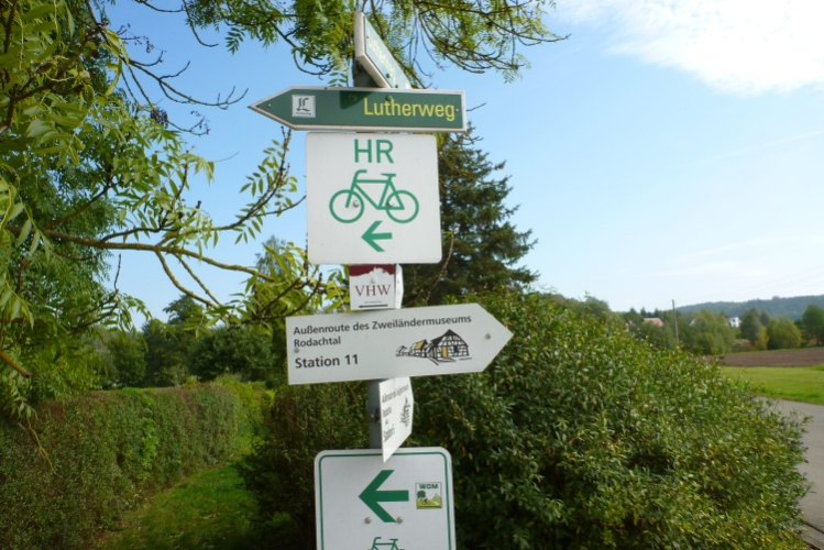 250 Einwohner zählt der zu Gemeinde Straufhain gehörende Ort mit Kirche aus dem Jahr 1703 im Zentrum. Wir verlassen den Ort auf geteerten Rad- und Feldwegen rechterhand des Flusses Kreck. Die Streckenführung ist kurzweilig, und geht mal links, dann rechts, mal rauf und mal runter.