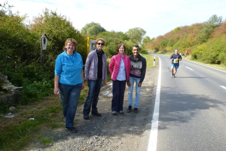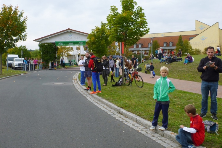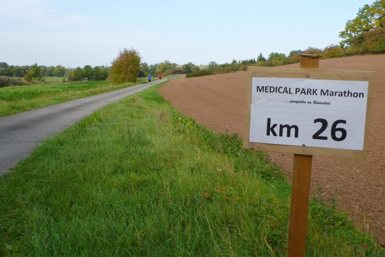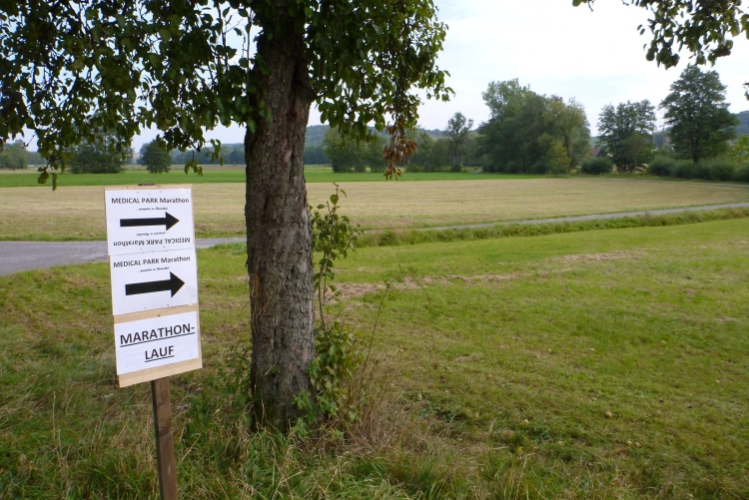 Zwei Staffelläufer sind schon arg malade, als sie ihren Stab an die Nachfolger übergeben. Und die machen sich aus dem Staub. Bis der Fotograf sein Werk vollendet hat, ist keiner mehr zu sehen, also mache ich mich allein auf den weiteren Weg. Die Halbmarathonis sind hier vor rund 1,5 Stunden gestartet. Die ersten werden schon am Medical Park angekommen sein.
