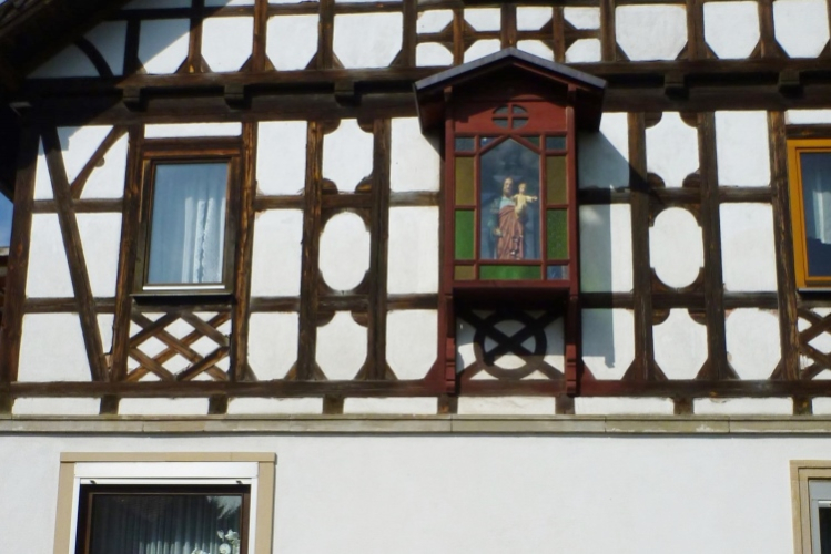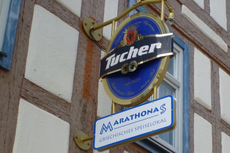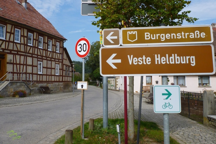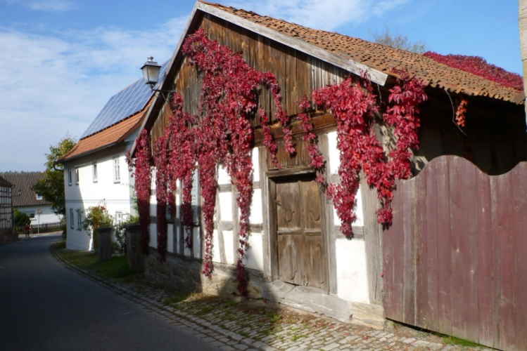 Der 30. Kilometer liegt hinter uns, als ich in die mit knapp 500 Einwohner zweitkleinste Stadt Ummerstadt hineinlaufe. Auch hier ist der gesamte historische Ortskern unter Denkmalschutz. Schutz werden die Gänse und Enten nicht mehr haben, denn nächste Woche ist Kirchweih. Der Franke sagt auch Kerwa. Und da wird das Federvieh traditionell in der Bratröhre landen. Wie die Kerwa gefeiert wird, kann man diesem Gedicht entnehmen: