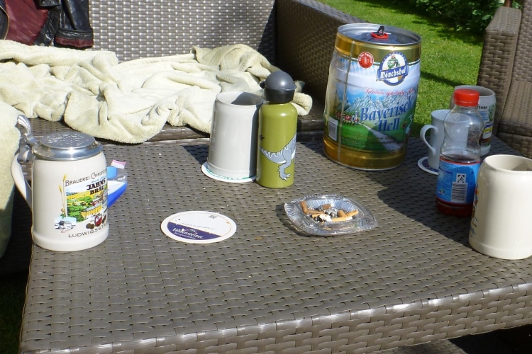 Ich schäkere mit den Helfern an der Tanke herum und lasse mir noch ein Bier einschenken, merke dann aber, dass die führende Josefine an mir vorbei saust. Mann, ääh, Frau, hat die einen Zug drauf. Sauber hat sie das Rennen eingeteilt, ich ziehe den Hut. Und der Bodo? Ist nicht in Sicht, vielleicht von ihr versägt.